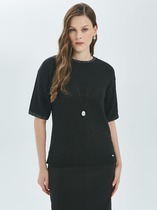Джемпер прямого силуэта из фактурного трикотажного полотна джерси. Округлая горловина с окантовкой. По борту нефункциональная планка с пуговицами. Короткий втачной рукав.