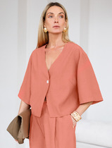 Джемпер без рукавов из фактурного трикотажного полотна джерси, среднее плечо. V-образный вырез грловины,по спинке узкая перемычка из окантовки. Перед и спинка двойные, спереди нашивка дерево.