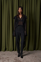 Брюки широкие из трикотажного поливискозного полотна джерси. По талии пояс на внутренней резинке. Спереди имитация гульфика. Боковые карманы с отрезным бочком. Боковые шлицы, по низу изделия потайной стежок.