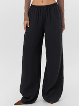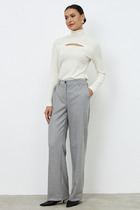 Брюки прямые, широкие из текстильного полотна штапель. Притачной пояс со шлевками, гульфиком и застежкой на молнию, крючок. Боковые карманы с отрезным бочком. По спинке вытачки, спереди металл нашивка на шлевке.