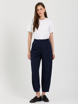 Брюки прямые,широкие из тканого полотна лен с вискозой. По талии притачной пояс на внутренней резинке, в поясе шнур из основной ткани. Боковые карманы в отрезном бочке.