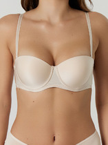 Бюстгальтер классической формы с формованной чашкой с небольшим Push-up по низу. Детали изделия выполнены из эластичного полотна и эластичного кружева. Бретели эластичные, съемные. Центральная деталь декорирована бантиком из атласной ленты.
