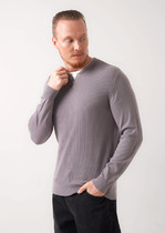 Мужской вязаный джемпер с круглым вырезом горловины в базовом ассортименте. Модель завершенная благодаря двойной контрастной горловине, декоративной полосатой тесьме и провязаной обтачке по спинке. Модель дополняет металлофурнитура по низу.