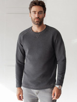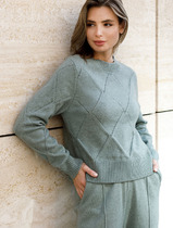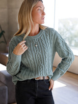 Вязаный джемпер свободного силуэта из акриловой пряжи, переплетения гладь, спереди косы. Длинный втачной рукав. Округлая горловина с бейкой. По низу изделия и рукавов манжеты.