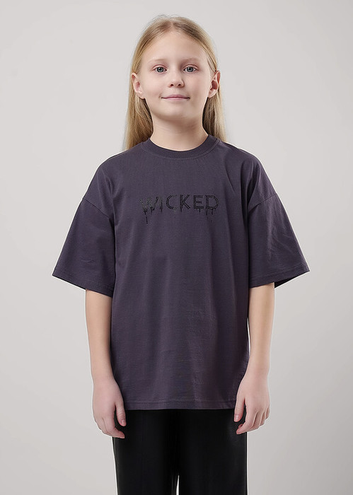 Супер оверсайз силуэт хлопковой футболки - тренд сезона! Фишка -стильные термостразы. Эластичная горловина, комфортная посадка. Сочетай футболку с любимыми широкими брюками и будь на стиле!