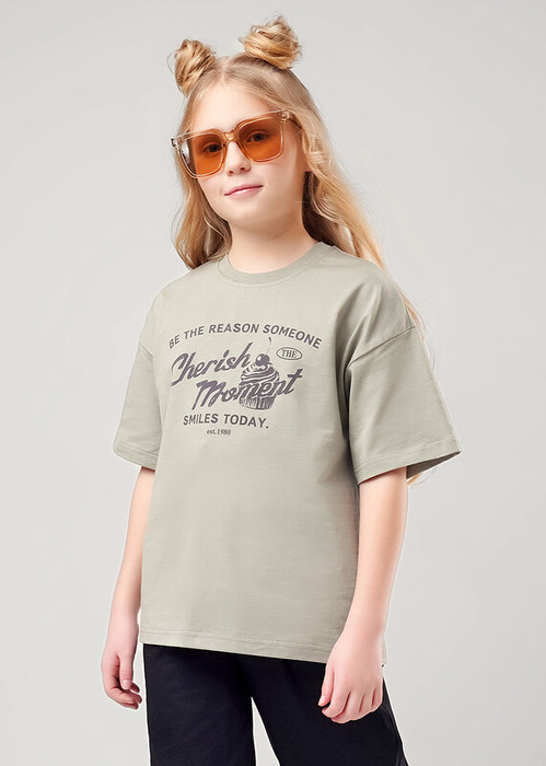 Совместные покупки Омск Детская одежда Футболки, майки — Clever Футболка детская для девочки CLE 866885кд_п хаки