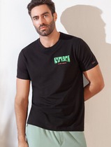Футболка свободного кроя с круглым вырезом горловины и коротким рукавом. Модель выполнена из фактурного трикотажного полотна. Акцент изделия- дизайнерский принт и контрастные отделочные строчки. Универсальная вещь мужского гардероба на каждый день.