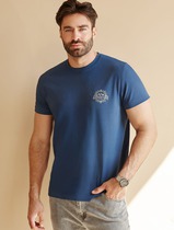 Футболка мужская с круглым вырезом горловины и коротким втачным рукавом из фактурного полотна флам. Футболку дополняет шрифтовой принт. Подойдет для прогулок и встреч с друзьями.