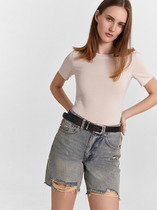 Джемпер из хлопкового трикотажного полотна. Короткий спущенный рукав с загибом. Круглый вырез горловины обработан рибаной. По переду принт.
