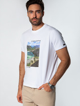 Футболка прямого силуэта из плотного хлопкового трикотажного полотна. Втачной короткий рукав. Округлая горловина с обтачкой. Спереди принт вспенка.