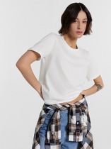 Футболка из трикотажного полотна с добавлением модала. Округлая горловина с окантовкой. Короткий втачной рукав. Спереди кокетка, нижняя часть переда двойная.