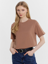 Джемпер умеренного объема из хлопкового трикотажного полотна -рибана. Втачной короткий рукав. Округлая горловина с окантовкой.