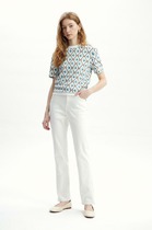 Футболка прямого силуэта с втачным рукавом из 100% хлопка, низ рукавов с отворотами, по низу ркава и на переде изделия принт