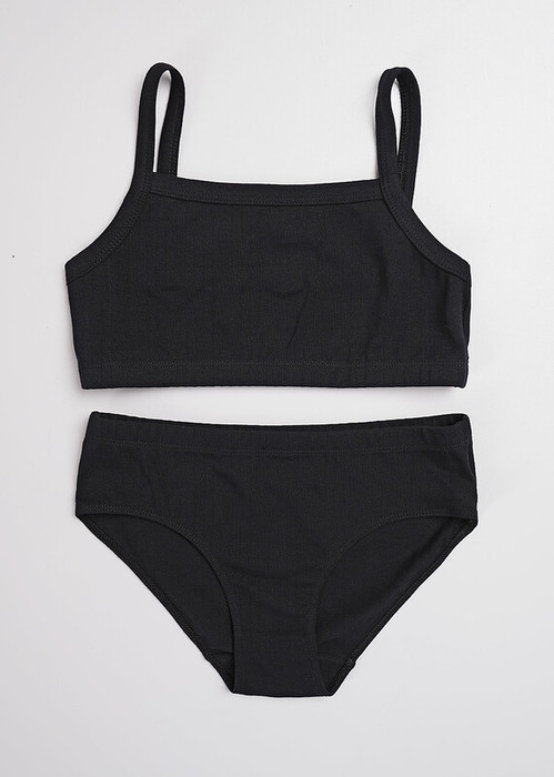 Нежный детский комплект белья в чёрном оттенке: мягкий топ и удобные трусики из приятной хлопковой лапши. Натуральные материалы и продуманный крой обеспечивают идеальную посадку и комфорт в течение всего дня.