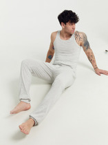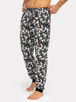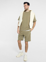 Комплект мужской состоящий из футболки и брюк. Футболка из трикотажного полотна в набивку с коротким рукавом и дизайнерской нашивкой. Брюки из трикотажного полотна на широком поясе с резинкой и регулируемым шнуром, по бокам удобные карманы.