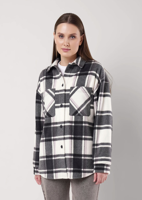 Куртка спортивная прямого силуэта из трикотажного полотна флис. По горловине отложной воротник, по борту застежка на пуговицы. Спереди накладные карманы, нашивка. Длинный рукав, внизу на манжете. Фигурный низ изделия с боковыми вставками.