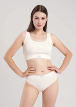 Майка-топ женская из эластичного хлопкового полотна. Двойной перед. Узкая бретель. По низу широкая резинка.