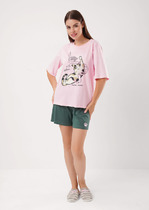 Майка для дома и отдыха из трикотажного полотна кашкорсе, с широким плечом. Обтачки по горловине и пройме. По переду контрастные резы. По горловине, пройме и резам контрастный застил. Спереди принт.