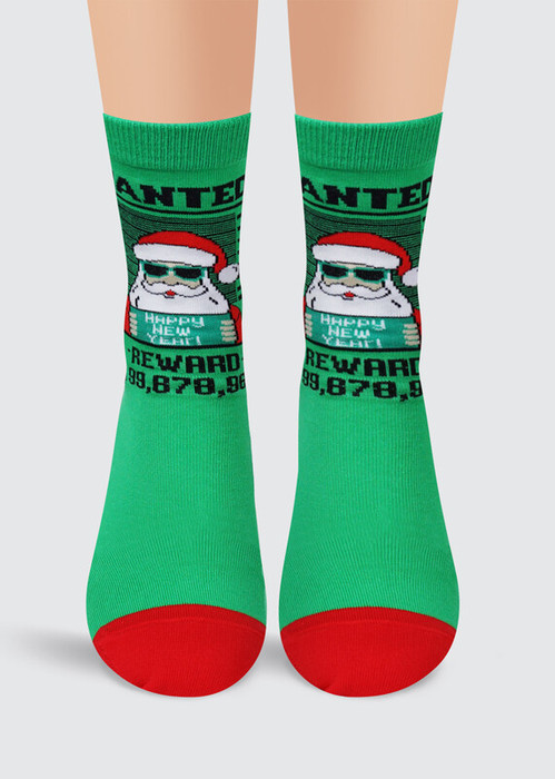 детские новогодние носки с рисунком деда мороза и надписью"разыскивается"