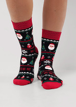 теплые плюшевые новогодние носки со скандинавским орнаментом и рисунком дед мороза