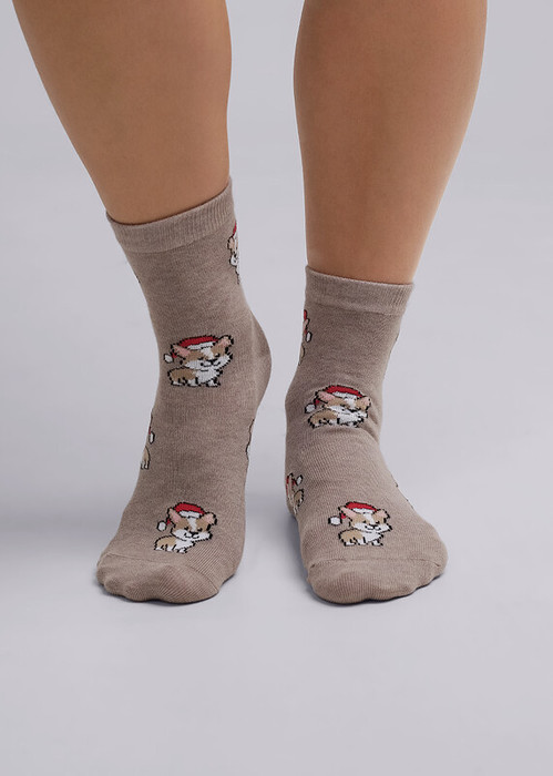 новогодние женские носки с рисунками маордочка собаки корги