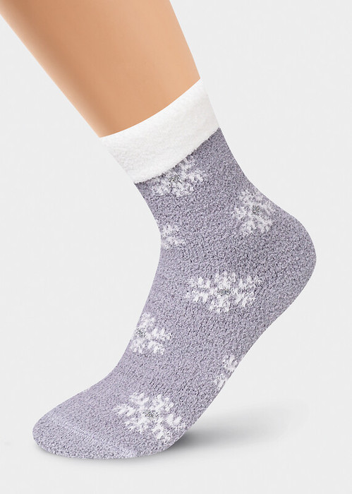 уютные женские носки из мягкой""травки"" с отворотом, с рисунком снежинка украшенная люрексом
