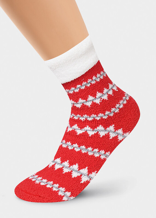 уютные женские носки из мягкой""травки"" с отворотом, с орнаментом украшенным люрексом