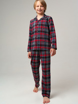 Новогодняя пижама для мальчика, состоящая из джемпера и брюк. Джемпер с оригинальным принтом имеет обработку из эластичного трикотажа по линии горловины, низу рукавов. Брюки умеренного объёма выполнены из хлопкового полотна в клетку.