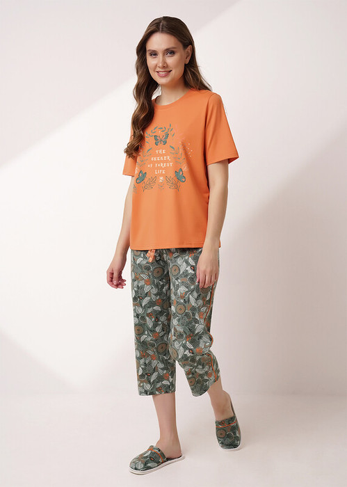Совместные покупки Омск Женская одежда Пижамы, халаты — Clever Пижама женская CLE LP15-1184/1 т.оранжевый/зелёный