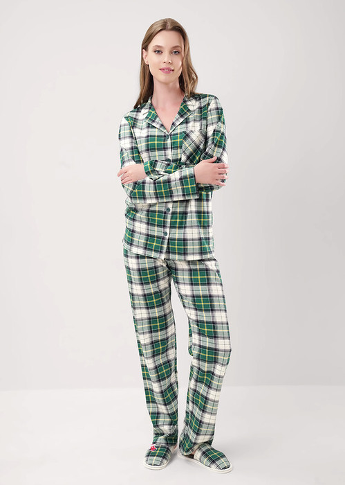 Clever Пижама женская CLE LP15-1199/4 т.зелёный/молочный