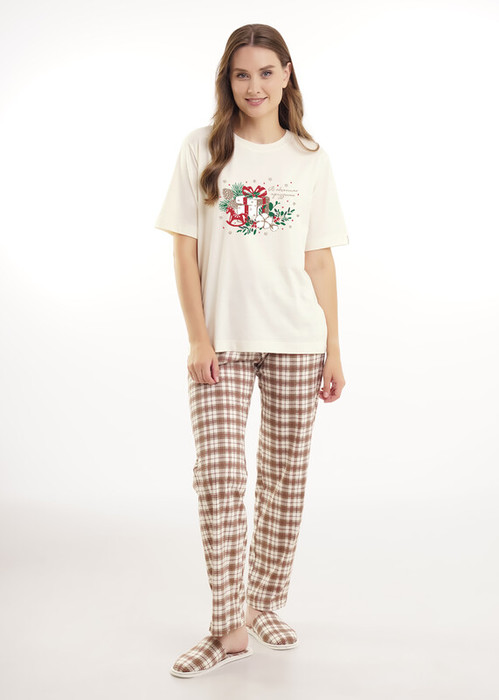 25.03 Clever Пижама женскаяCLE LP15-1200/3 молочный/св.коричневый