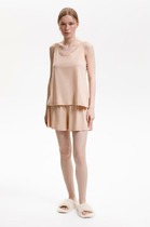 Набор одежды из трикотажного полотна.Футболка прямого кроя. Короткий втачной рукав с отворотом и закрепкой. По горловине обтачка.Спереди принт с помпоном, вшивка в боковом шве.Брюки с поясом на резинке.Боковые карманы с отрезным бочком.Внизу брюк манжет.