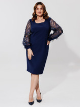 Платье из трикотажного полотна интерлок жаккард, прямого силуэта длиной ниже колена. По горловине стойка, спереди на молниии. Длинный втачной рукав. По спинке средний шов, внизу разрез.