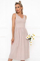 Платье свободного кроя из шифона на подкладе, длиной миди. Втачной короткий рукав. Округлая горловина. Нежная, струящаяся фактура ткани подчеркнет достоинства любой фигуры, а пояс сделает акцент на талии.