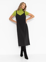 Сарафан из тканого полотна лен с вискозой,свободного кроя отрезной под линией груди со сборкой. Широкие бретели, квадратный вырез, длина миди.