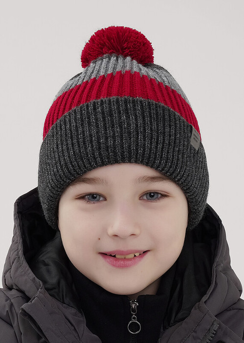 Шапка детская с отворотом и ниточным помпоном, с утеплением флисом по всей голове. Выполнена из высококачественной пряжи, декорирована стильной нашивкой в височной зоне. Станет не только отличной защитой от холода, но и модным аксессуаром.