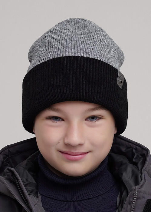 Совместные покупки Омск Детские аксессуары Шапки — Clever Шапка детская для мальчика CLE 454500ап флис меланж серый/чёрный