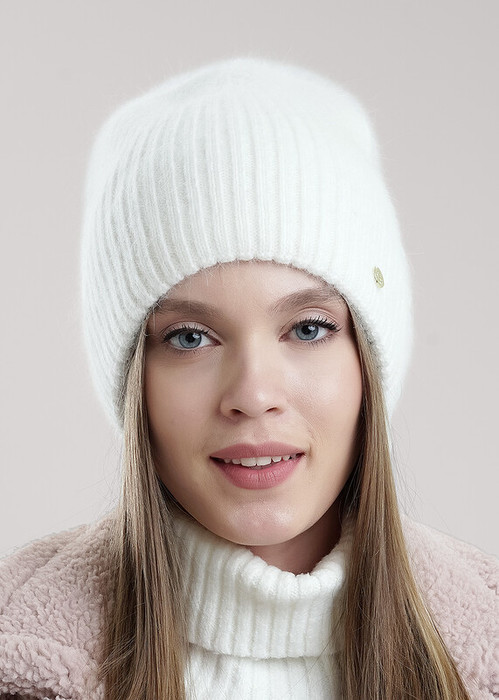 Женская двойная шапка без отворота, связаная ластичным переплетением, выполнена из пряжи с содержанием высококачественной ангоры.