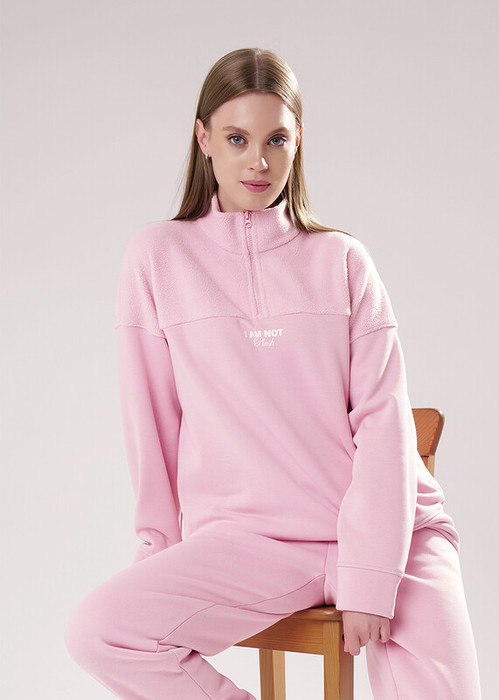 Джемпер спортивный свободного силуэта из трикотажного полотна футер с начесом ""тедди"". По горловине стойка с молнией. Спереди и по спинке кокетка наизнанку. Длинный рукав со спущенной линией плеча, по низу манжет. Внизу изделия притачной пояс.