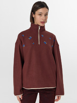 Куртка спортивная прямого силуэта из трикотажного полотна флис, на молнии. По горловине стойка. Спереди горизонтальный рез, карманы на молнии. Длинный рукав со спущенной линией плеча, нашивка.По низу рукава и низа изделия окантовка. Спереди вышивка.