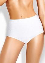 Трусы макси утяжка женские из эластичного хлопкового полотна. По переду средний шов с кружевными вставками. Обработка краев по талии и ноге ажурная резинка (точечный зигзаг).