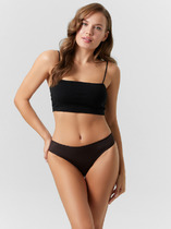 Трусы бразилиана из хлопкового полотна с эластаном. Сбоку вставки из узкой эластичной тесьмой. По ножке край окантован резинкой, а по талии жаккардовая резинка.