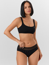 Детали трусов выполнены из эластичного полотна.Плоская резинка и шов делают изделие невидимым под одеждой.Внутренняя ластовица выполнена из хлопкового полотна. Средняя линия талии.