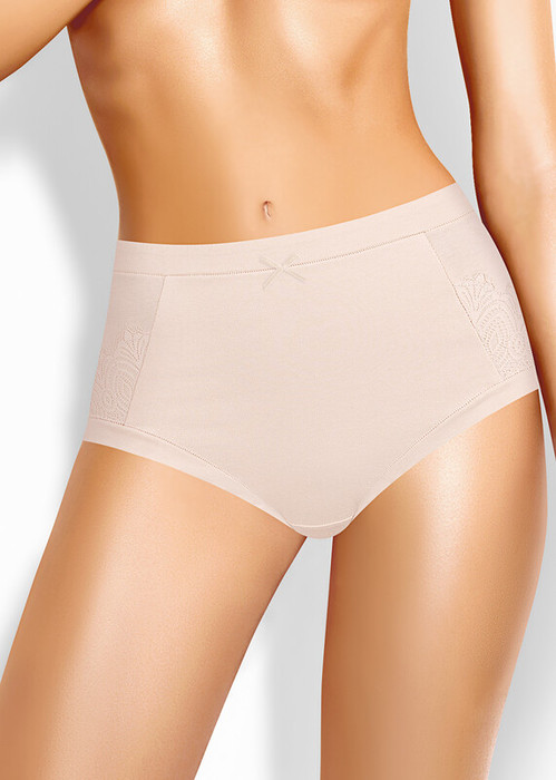 Трусы-макси утяжка женские из плотного эластичного хлопкового полотна. Обработка краев - обтачками из основного полотна с плоским швом. По переду декоративные резы и вставки из кружева.
