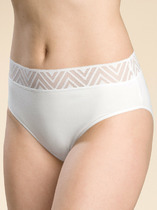Трусы макси на высокой посадке из интерлока, состав 80% хлопок, 20% эластан. Боковые швы смещены в сторону переда, по ножке бесшовная обработка, полотно не распускается за счет особенностей плетения, по талии обработка жаккардовой резинкой.