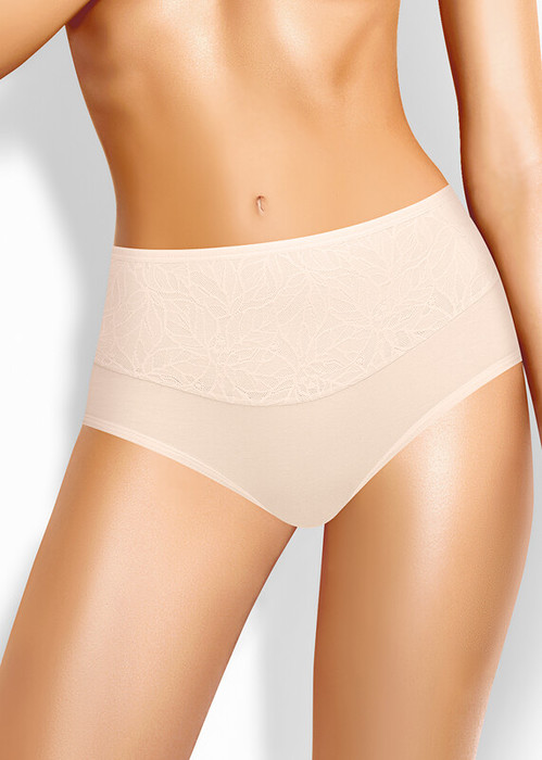 Трусы макси утяжка женские из эластичного хлопкового полотна. По переду переду рез с кружевной вставкой. Обработка краев по талии и ноге окантовочная резинка.