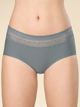 Трусы - шорты из ажурной сетки. Спереди декорированы широким кружевом в цвет и атласным бантом. Ластовица из хлопка. По талии резинка с фестоном