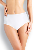 Трусы шорты из хлопкового полотна с добавлением эластана комфортной посадки. На детали переда и спинки широкое кружево. По поясу и ножке резинка с фестоном.