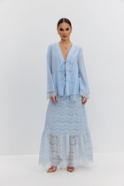 22.03 Vilatte Юбка на запАх из эластичного денима D56.112 светло-голубой