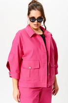 Вязаный жакет из вискозной пряжи с добавлением акрила, свободного силуэта на молнии переплетения гладь. По горловине отложной воротник. Длинный втачной рукав. По низу изделия и рукавов манжеты. По воротнику и манжетам ластичное переплетение.